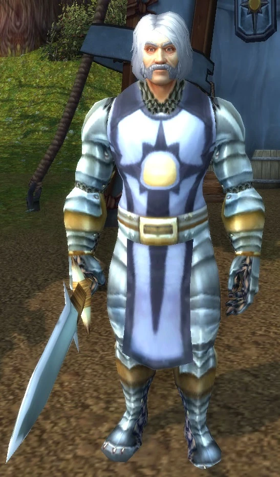 - During the beta, he wore the Argent Dawn tabard.