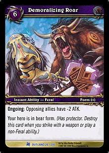 Ongoing: Opposing allies have -2 ATK. Your hero is in bear form. (Has protector. Destroy this card when you strike with a weapon or play a non-Feral ability.) |