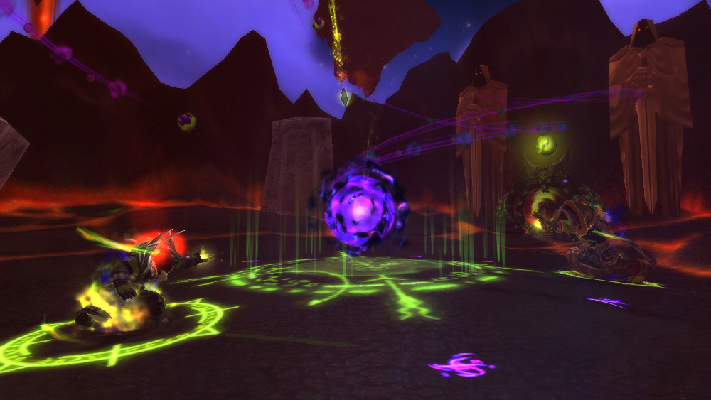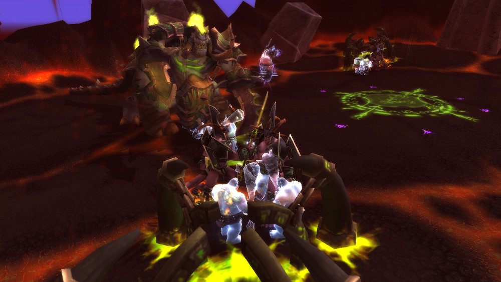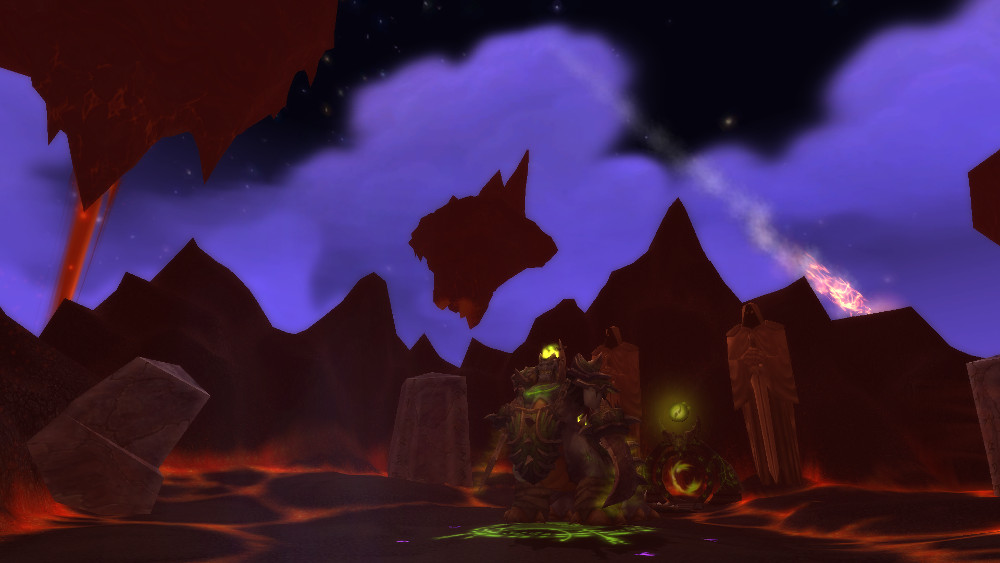 Part way through the fight, three demonic portals open up and start spilling out felguards, darkhounds, and other demons, but Agg'thok the Eternal chooses now to pay off his debt, summoning a host of ghostly ogres to keep the lesser demons occupied.
