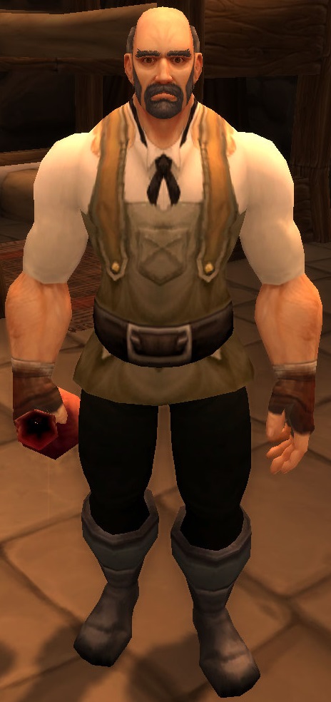 Doctor Gustaf VanHowzen, trauma surgeon and chief physician of Alliance Trauma, is a human first aid trainer located on the ground floor of Foothold Citadel on Theramore Isle in Dustwallow Marsh. He also oversees the training of Theramore's healers.[1] In addition to teaching artisan level first aid skill, he teaches how to create Heavy Mageweave Bandages at 240+, Runecloth Bandages at 260+ skill and Heavy Runecloth Bandages at 290+ skill for free.