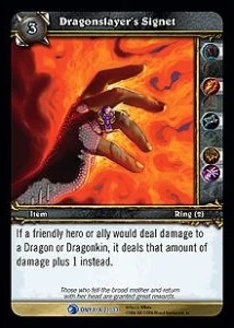 | Rules | If a friendly hero or ally would deal damage to a Dragon or Dragonkin, it deals that amount of damage plus 1 instead. |