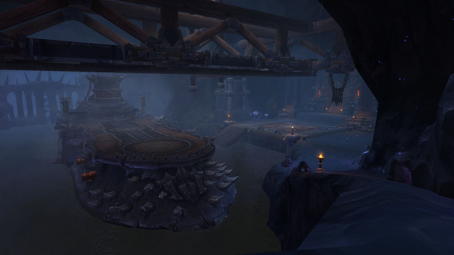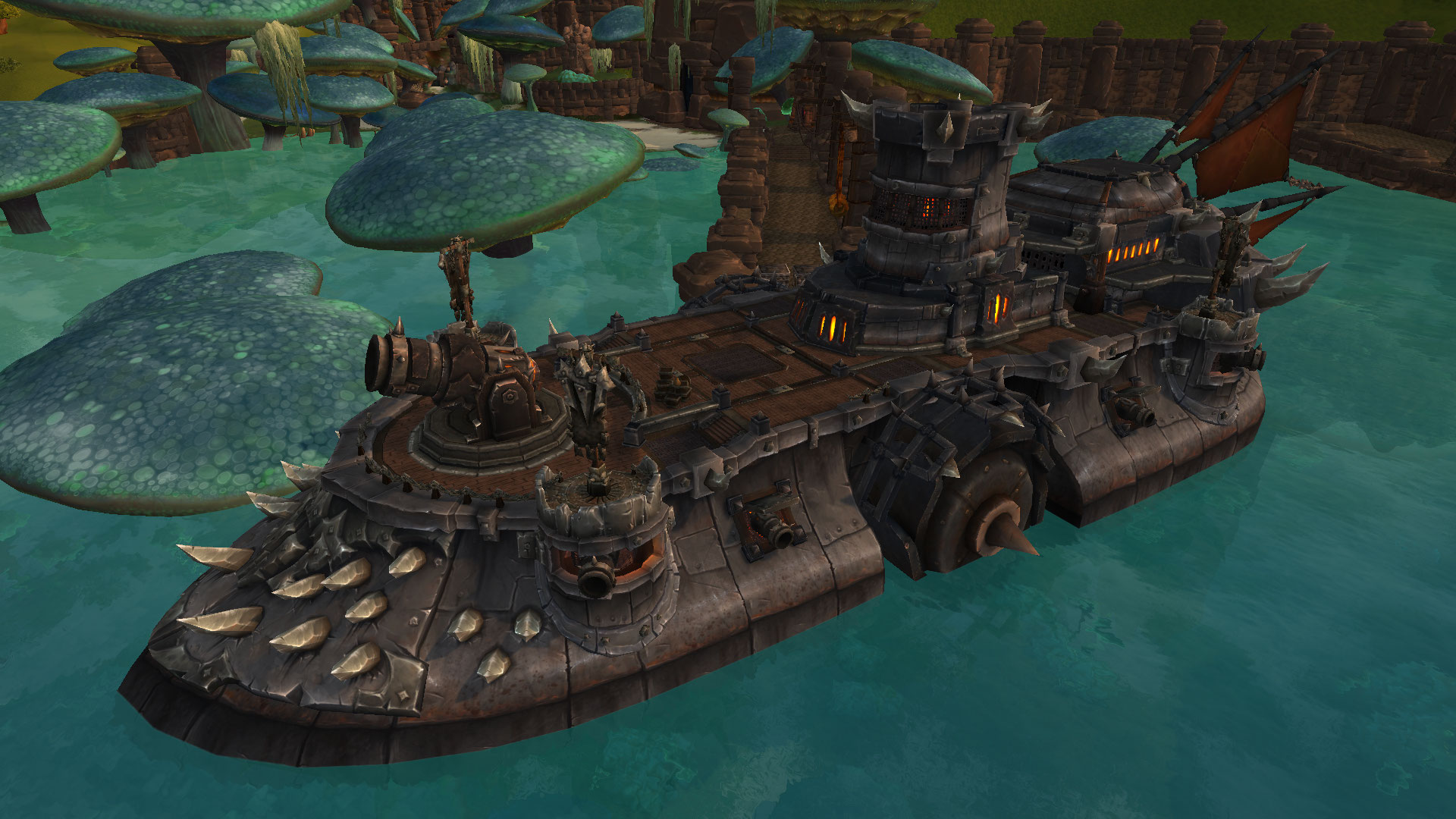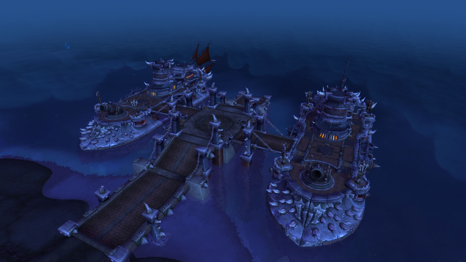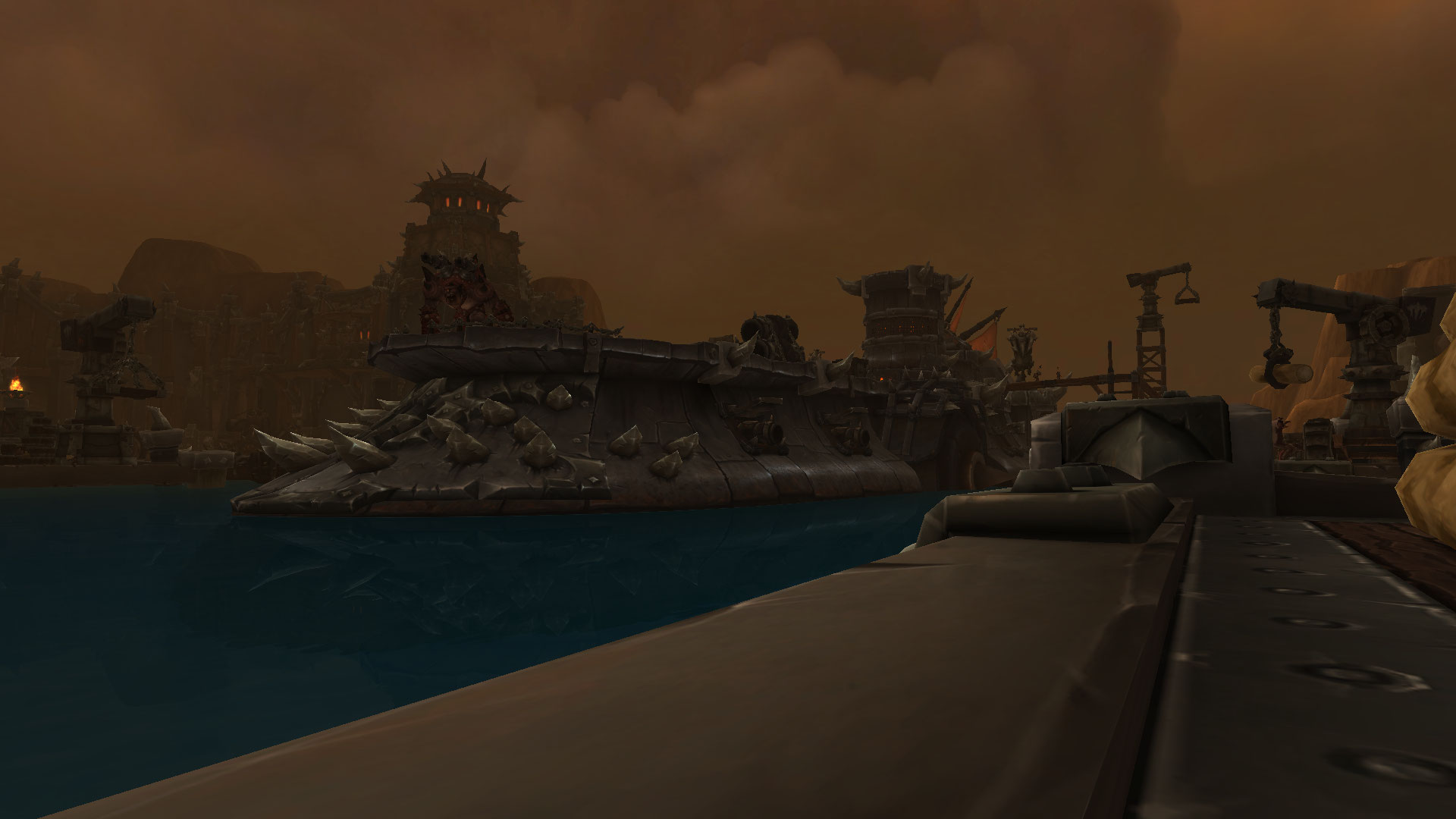 - A dreadnaught is moored in the waters of Highmaul Harbor, where it drew the attention of Brackenspore.[3]