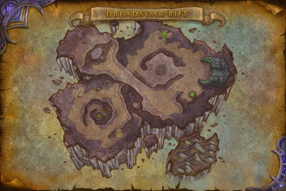 Dreadscar Rift is a former Burning Legion portal world which served as the pitlord Jagganoth's Lair, until the warlocks of the Black Harvest conquered it. Not much is known about this realm, except that Jagganoth, lieutenant of the dreadlord Mephistroth, had been its Overlord. The Dreadscar armies were bound to the new Overlord, the First of the Black Harvest.