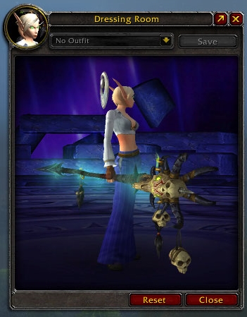 Tip: When you browse a vendor's wares and use the dressing room feature, you can close the vendor window, keep the dressing room window up and check out another vendor's wares. That way you can, for example, see how a certain weapon available at one vendor looks on you with a particular piece of armor available at another. You can even combine this with other methods, such as the chat link.