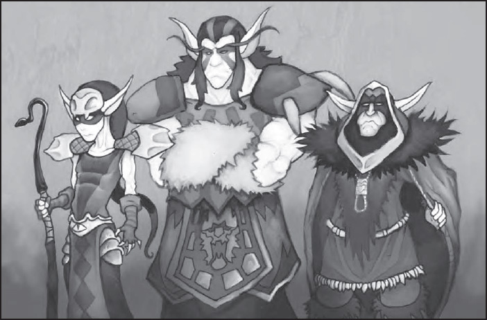 Art of totemic druids in the RPG, Druid of the Claw in the center.