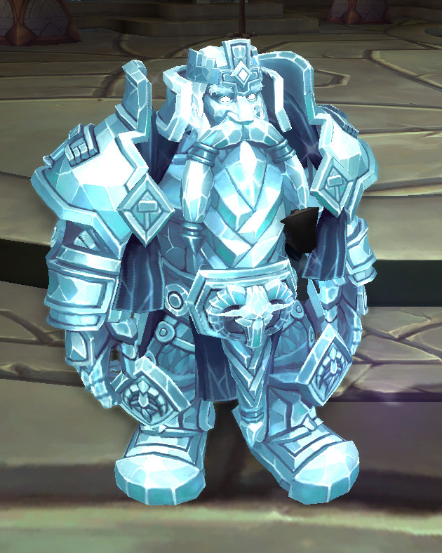 When freak natural disasters began rocking much of Azeroth just prior to the Cataclysm, the dwarven lands were not spared from the calamitous upheavals. A series of violent quakes tore through areas surrounding Ironforge, reducing settlements to rubble and taking the lives of many innocent dwarves in the process. To glean answers as to the troubling state of the world, King Magni selflessly underwent a mystic ritual to commune with the earth. The archaic ceremony, however, had an unexpected effect: Magni was transformed into diamond and became fused to the depths of Ironforge itself.