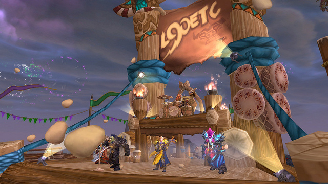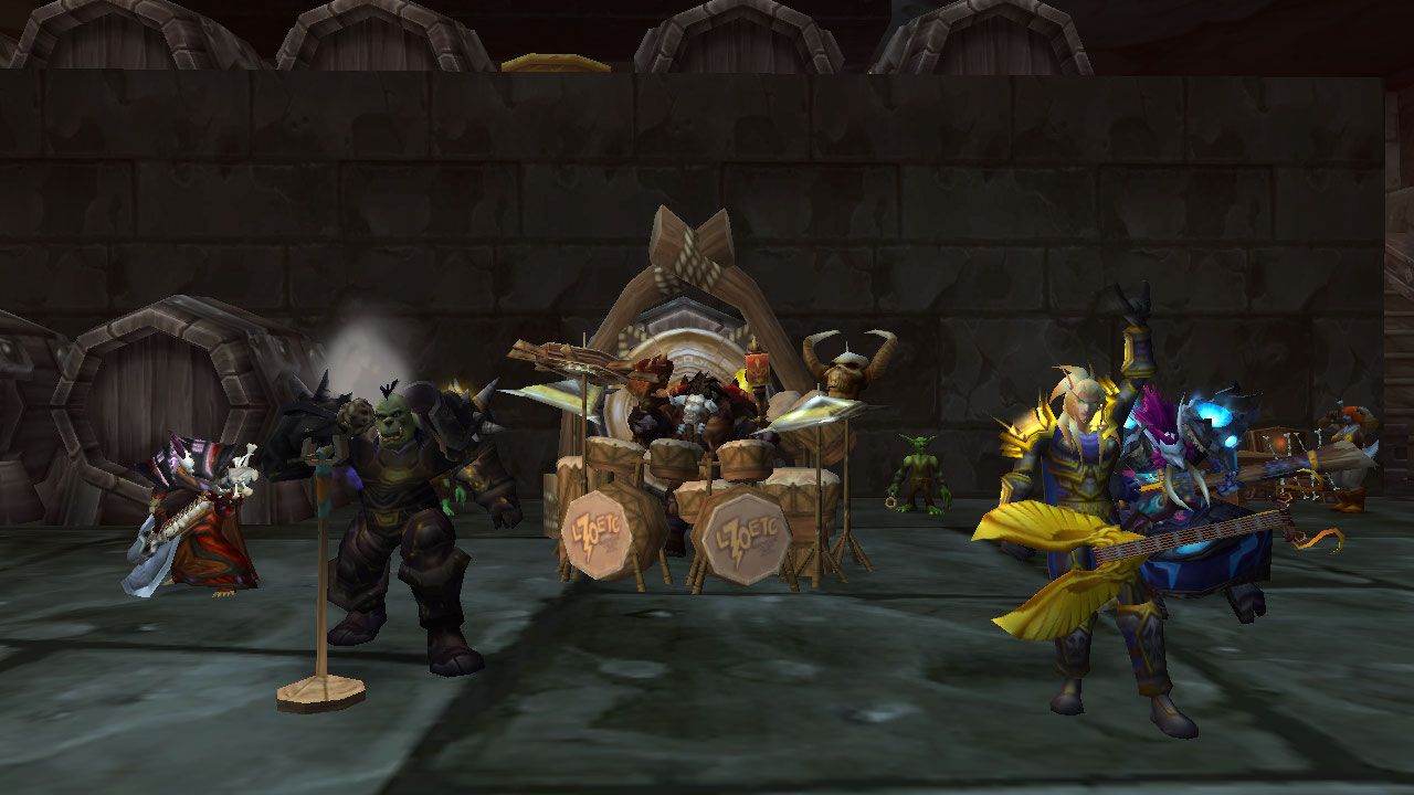 [Direbrew's Remote] from the Brewfest event can trigger a performance here at any time by talking to the roadie in charge, Ognip Blastbolt. - The Tauren Chieftains also performs on Darkmoon Island during the Darkmoon Faire.