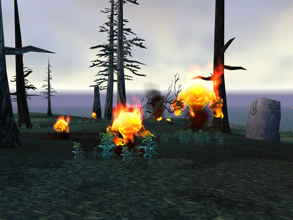 Emberglade is an area in the northeast part of Azuremyst Isle,[59, 18] that is filled with friendly fire elementals. The landscape is a burnt ring of trees, with only a few remaining grass blades and the occasional stone. A fire elemental named Temper is located here. Temper is the end point for the quest