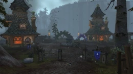Emberstone Village is a village along the Northgate River in northeastern Gilneas. It survived the worgen curse only to be invaded by the Forsaken. The villagers that did not escape were enslaved and forced to work in the nearby Emberstone Mine. Worgen heroes, after having rescued some of the villagers from the mine, then provided to the village itself to kill the Forsaken Infantry and their leaders, Executor Cornell and Valnov the Mad.