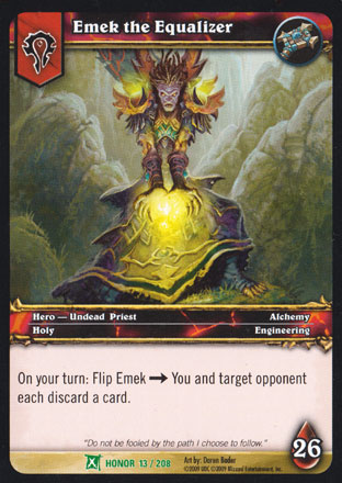 | Rules | On your turn: Flip Emek → You and target opponent each discard a card. |
