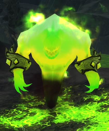 Entropic elementals[1] are manifestations of the chaotic energies and are made of pure fel magic that lashes out at all life. Their entropic essences are as poisonous as they are powerful. Some of them are the result of infernal rubble and debris' corruption seething into the ground in the Shatter Scar Vale in Felwood, although the fel taint there is slowly diminishing.[1][2][3] They can also be found in other fel-influenced areas.