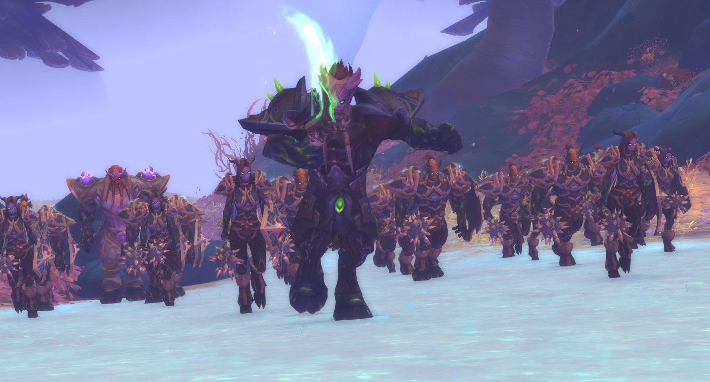 - Standing beside Velen, Hatuun points out Talgath down the slope in the distance, leading an army of man'ari eredar towards them.