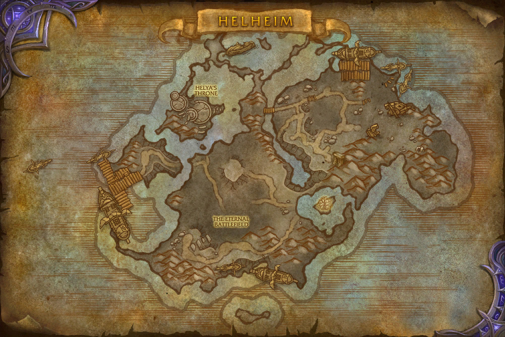 The Eternal Battlefield is the largest sub-region of Helheim. In Helheim, the spirits of the dishonorable spend eternity in an endless futile battle, always seeking glory but never able to attain it.[1] This manifests in a futile struggle against an undead giant known as Geir.[2]