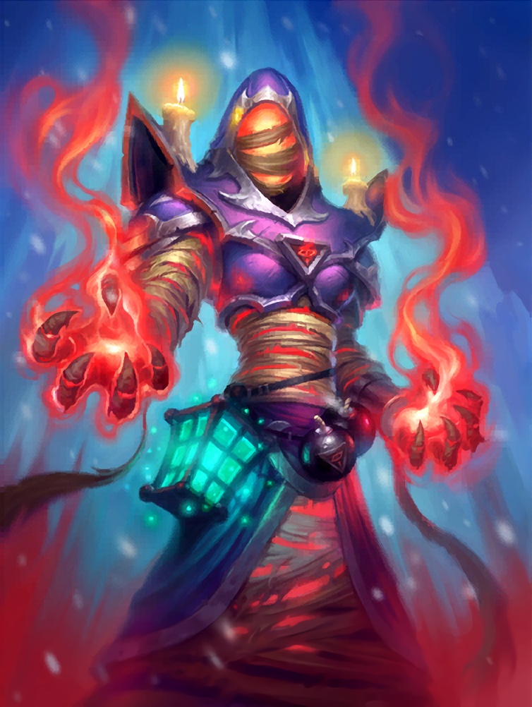 In the One Night in Karazhan adventure, there is a rare rogue card known as the Ethereal Peddler, which speaks with a distinctly feminine voice, indicating that it is the first known female ethereal to appear in the Warcraft universe. Hearthstone has since seen the introduction of other female ethereals in the form of Transmogrifier from Descent of Dragons and Grand Lackey Erkh from Galakrond's Awakening.