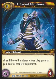 | Rules | When Ethereal Plunderer leaves play, you may gain control of target equipment. |