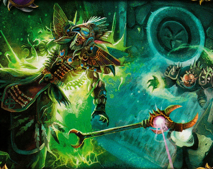 Under the tutelage of Kil'jaeden, Gul'dan was the first orc warlock and is considered one of the most powerful mortal warlocks to have ever existed. He taught other young orcs the dark arts and strove to eradicate the orcs' shamanistic traditions. His master, seeking to tighten his hold over the orcs, helped Gul'dan found the Shadow Council, a secretive sect that manipulated the clans and spread the use of fel magic throughout Draenor. As more and more orcs began to wield warlock magics, the gentle fields and streams of Draenor began to blacken and fade.[2]