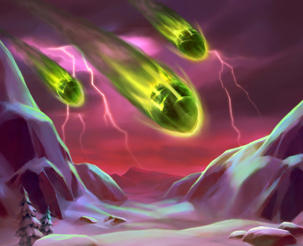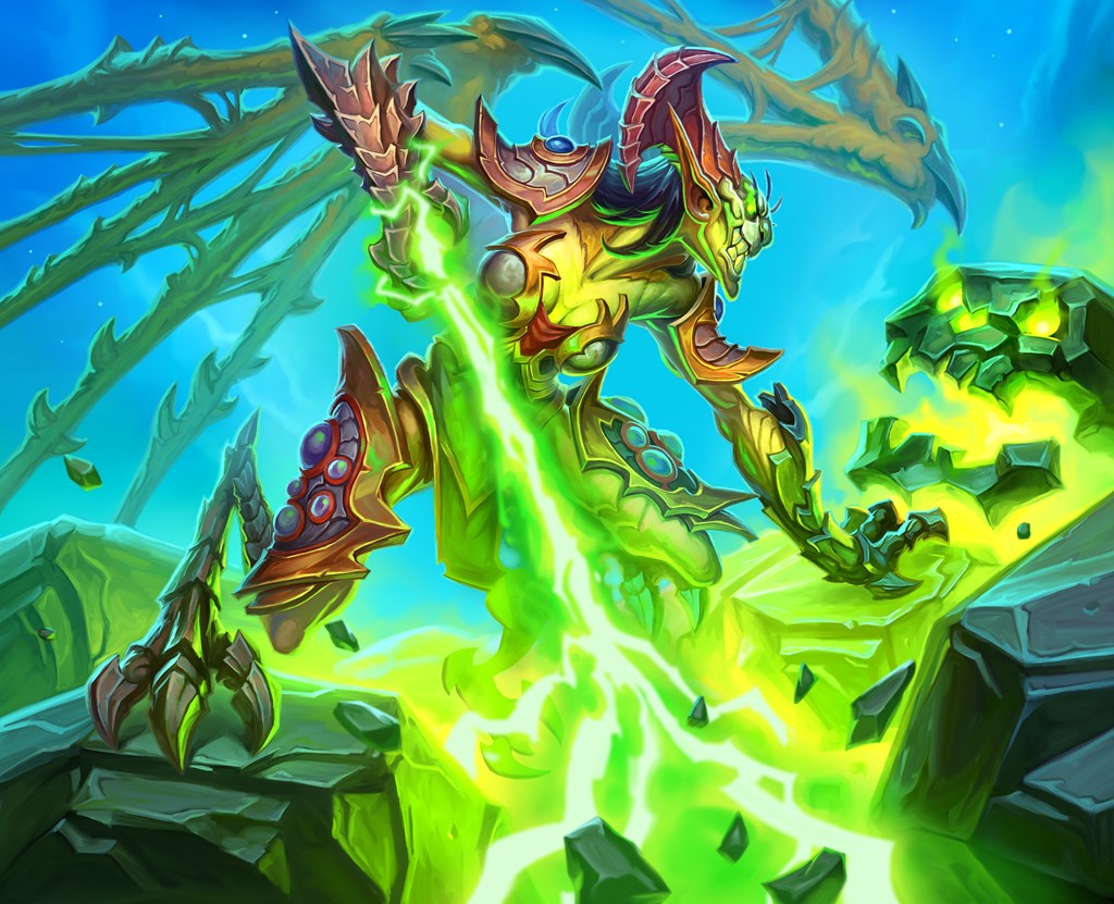 Gul'dan raising a fel volcano as he destroys Draenor's connection to the elements.