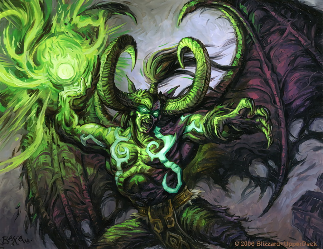 As the existence of non-sentient demons suggests, a creature's wishes are irrelevant to the process. Willing or not, a creature can be changed into a demon.[49] The chaos magics of the eredar warlocks have burnt out whole worlds and annihilated countless species over the eons,[1] turning indigenous races into demons.[50] During the third invasion of the Burning Legion, many species were corrupted with fel magic, including dragons, harpies, murlocs, arakkoa, hounds, wolves, boars,[51] and so on. The void revenant Xhul'horac was twisted and fed overwhelming fel energy by alternate Gul'dan, as he wanted to use his powers to tear open the portals through which he planned to rally the forces of the Burning Legion.[52]