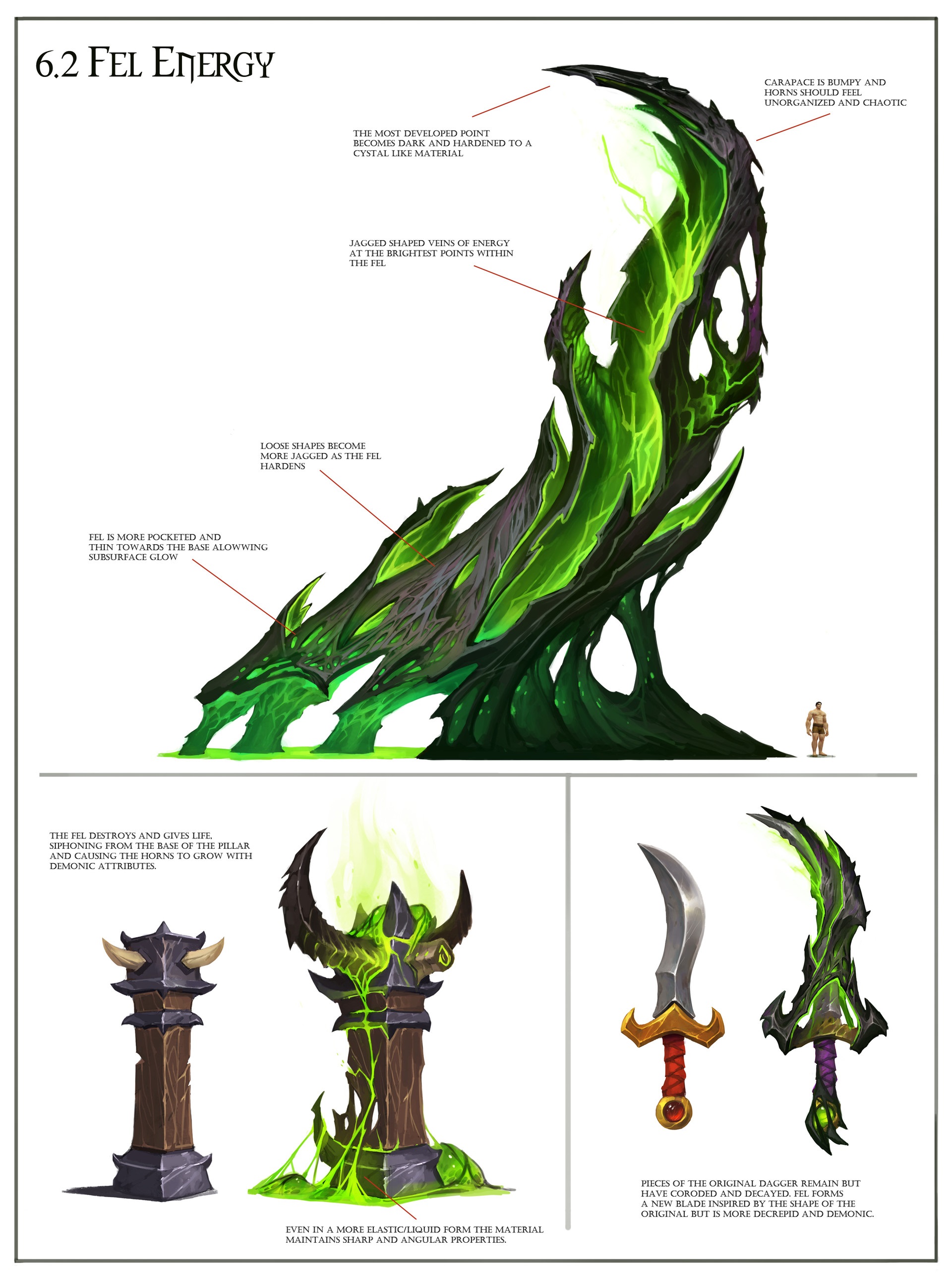 Patch 6.2 style guide showing fel energy's behaviors and effects.