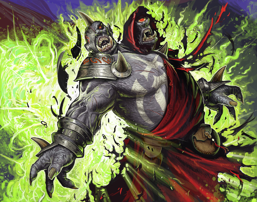 From every account, the demonic energies, used so freely and with no heed given as to their cost, leeched all that was wholesome and life-giving from the world of Draenor.[68] The originally brown orcs changed from under the influence of Mannoroth's blood, their skin became various shades of green and they began experiencing lusts for blood. Those who kept drinking pit lord blood became fel orcs.