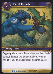 | Notes | Feral Energy checks whether your hero is in cat form as it triggers, but it doesn't recheck as that triggered effect resolves. |
