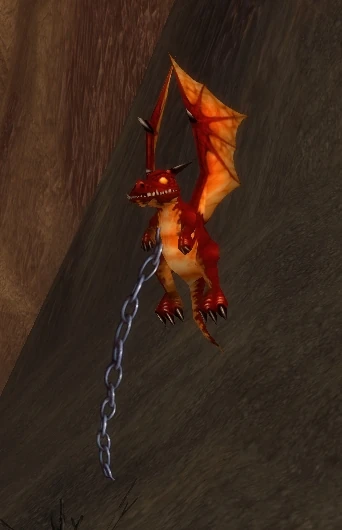 Fettered Red Whelplings are red whelps that have been taken captive by the Blackrock Whelpers in the Whelping Downs in the Burning Steppes.