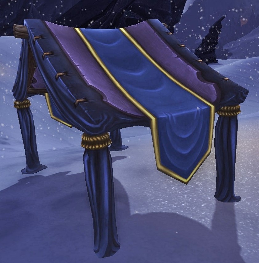 The Fine Blue and Purple Tent is a placable tent that provides a stat bonus if rested in.