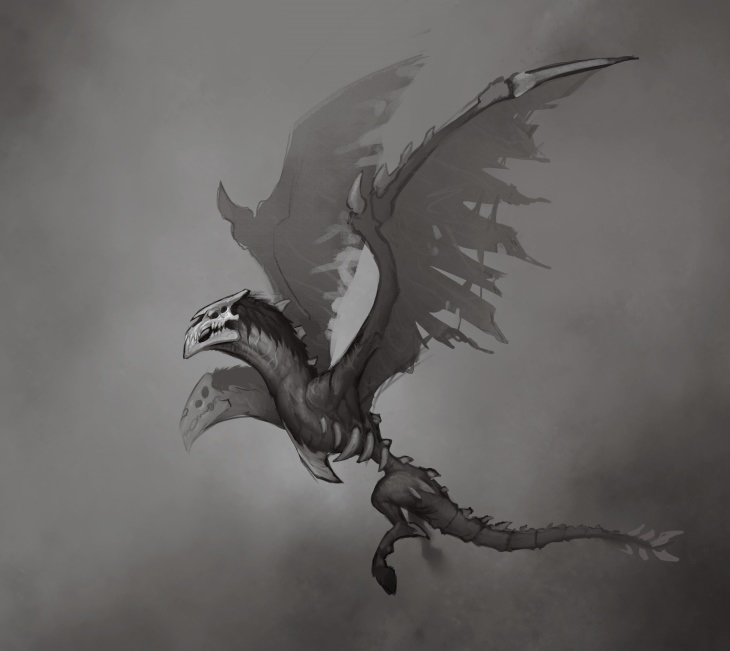 - Flayedwings were designed by artist Cody Harder to fit in with the "heavy metal" aesthetic of the rest of Maldraxxus. He gave the creatures a long dark mane resembling a metalhead's hair as well as sharp jutting bones to give them an "extra-aggressive feel". However, it was important to him to have the bones represent a realistic skeletal structure and not simply stick out in every direction. For example, the spike on the flayedwing's underbelly is modeled after the large and sharp sternum possessed by real-world birds.[4]