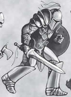 Footmen like to travel in small groups and form ranks. They are attuned to formation fighting, and coordinate their attacks. They're capable of bringing down well-armored opponents.[9]