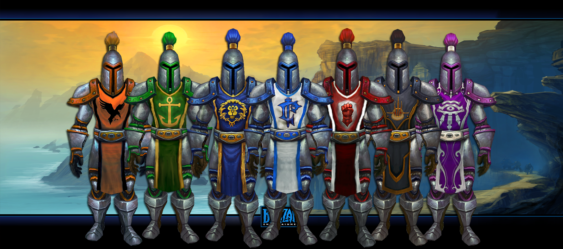 Stormwind, Kul Tiras, Stromgarde, Theramore, Lordaeron and the Sons of Lothar are depicted as having "classic" footman armor matching the color of their faction. Gilneas have their own infantry corps, with soldiers being depicted in the form of Gilnean Guards and later Footmen. Nethergarde, Hillsbrad and the Baradin's Wardens had footmen with different armors. Dalaran have their Kirin Tor Guardians (of which the Violet Hold Guards may be a sub-division, as seen in the Nighthold). It is unknown if Alterac had footmen, but the Syndicate Enforcers and Watchmen could have been remnants of them.