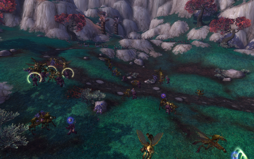The Gai-Cho Battlefield lies between Fire Camp Gai-Cho and Kri'vess in northern Townlong Steppes. A great many Gai-Cho gatewatchers, boltshooters, and cauterizers are defending the path up to the fire camp, but the yaungol are beset by Kri'thik swarm mantid in the form of Kri'thik aggressors and elite screechers.