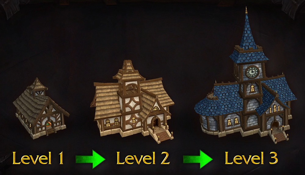 The player's garrison will offer 1 small and 1 medium building plots at level 1, up to a maximum of 2 large, 2 medium and 3 small plots at level 3.