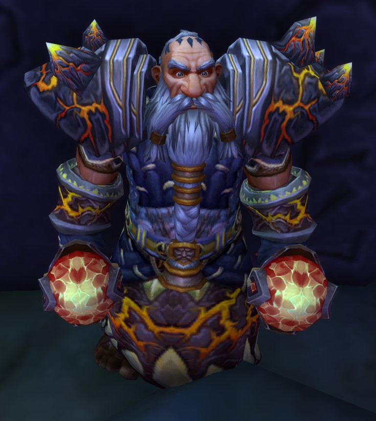 Gavan Grayfeather is a Wildhammer dwarf shaman of the Earthen Ring found at the Heart of Azeroth. There he offers his services to shamans by resetting artifact traits.