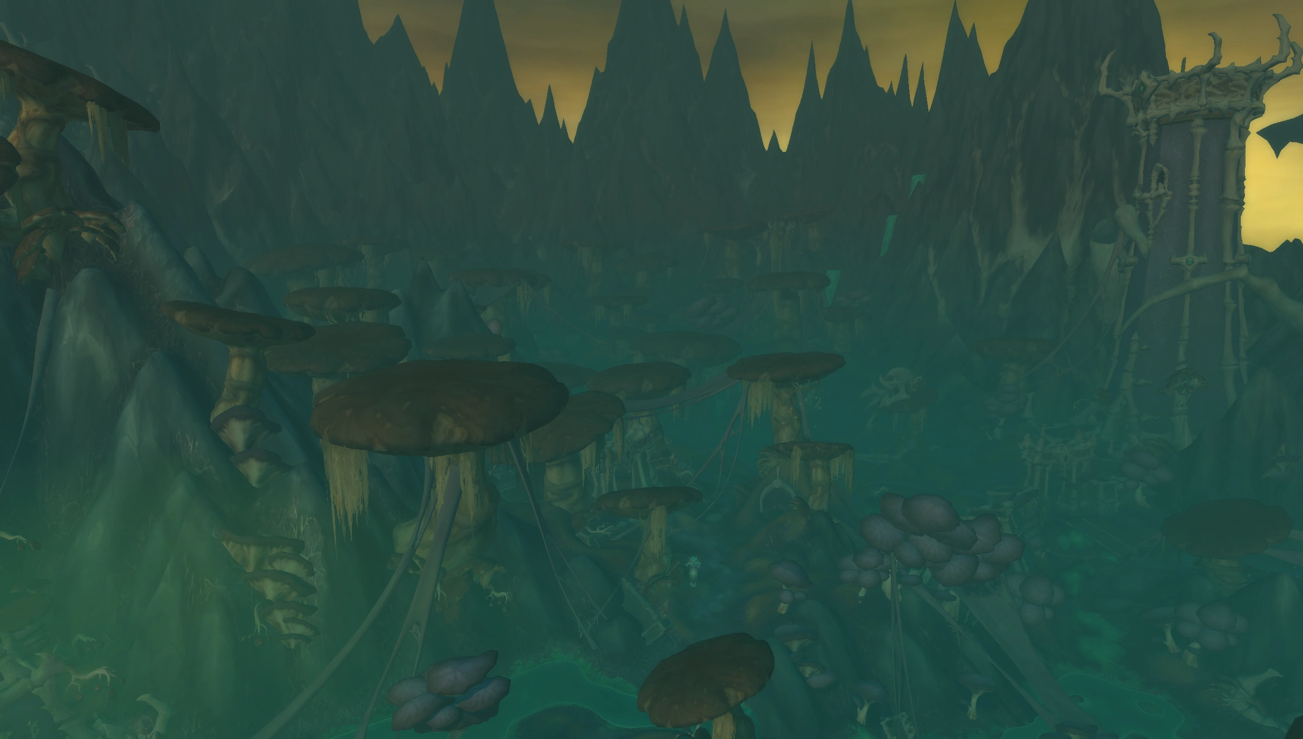 Glutharn's Decay, also called the Decay,[1] is an area in eastern Maldraxxus used primarily by the House of Plagues to collect slime from oozes, under Project Lead Allen[2] and inhabited by the fungrets of Maldraxxus. The area is also being meddled with by Mor'Bitan of the House of Rituals on orders of Kel'Thuzad,[3] including imprisoning and killing fungrets.[4]