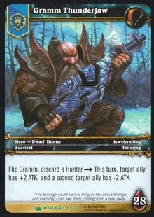 | Rules | Flip Gramm, discard a Hunter → This turn, target ally has +2 ATK, and a second target ally has -2 ATK. |