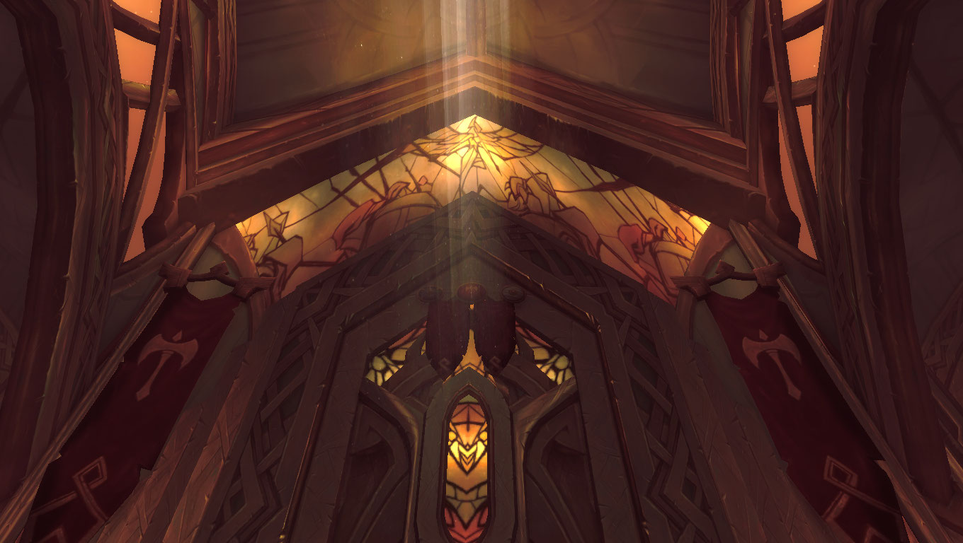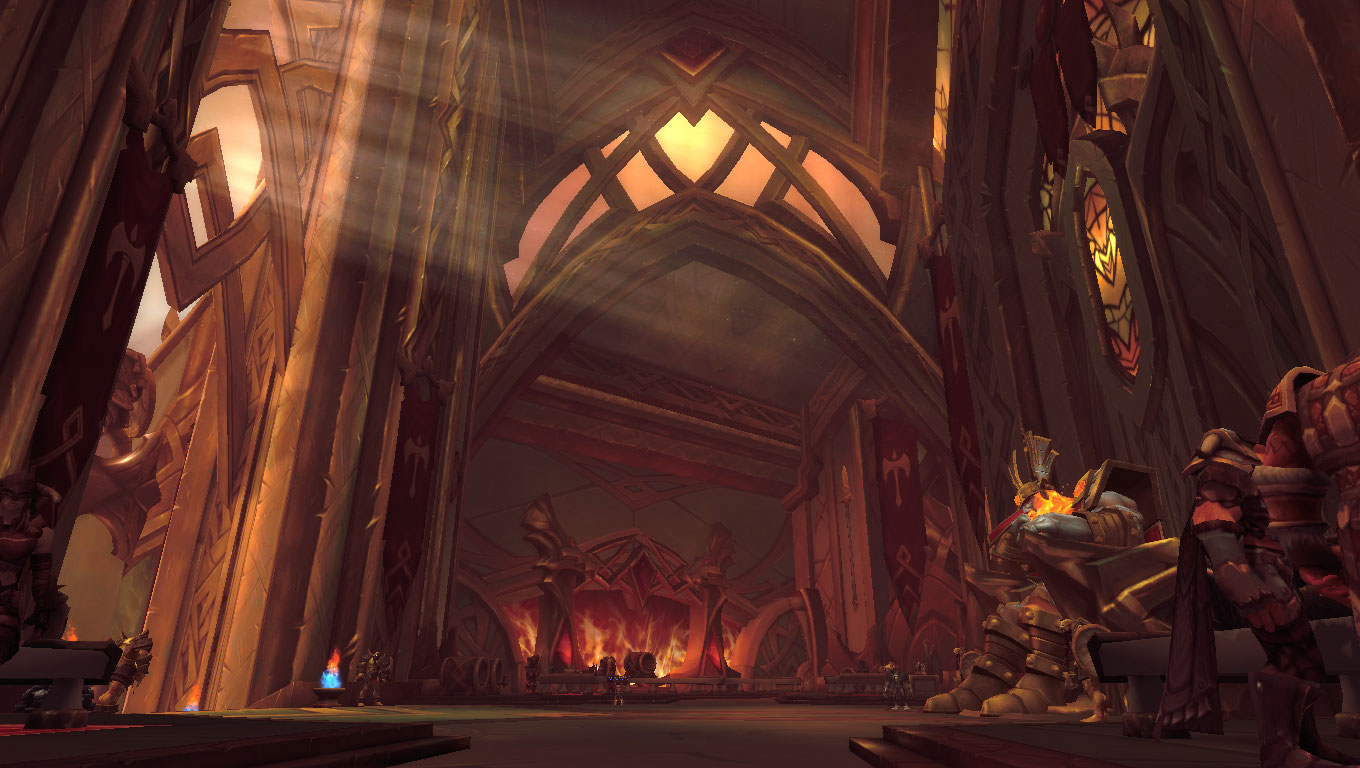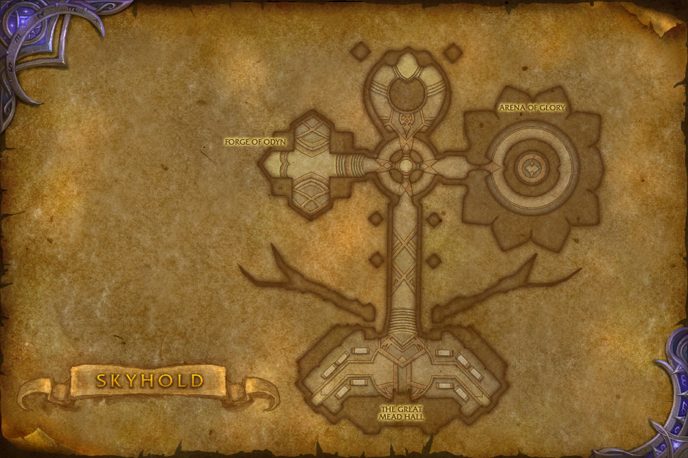 The Great Mead Hall is the spacious southern wing of Skyhold, the legendary home of the Valarjar. The hall is used both as a living quarters for the armies of Valarjar that reside in the Halls of Valor, as well as a seat of power for Odyn himself, a principal god of the vrykul. The mead hall is constantly filled with the revelry of many aspirants, shieldmaidens, and stormforged, and is well stocked with food and drink. Along with the Hall of Glory elsewhere in the Halls of Valor, the Great Mead Hall acts a throne room for Odyn, and important ceremonies are often conducted here.[1]