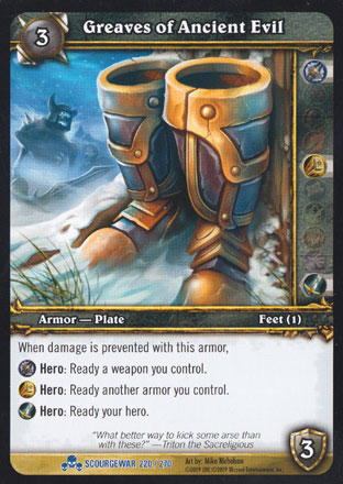 When damage is prevented with this armor, Death Knight Hero: Ready a weapon you control Paladin Hero: Ready another armor you control Warrior Hero: Ready your hero. |