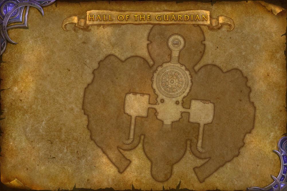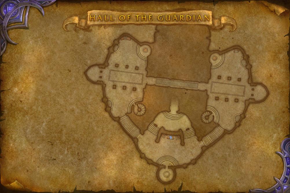 The Hall of the Guardian is the headquarters of the Tirisgarde organization, serving as the Order Hall for mages. It is located in the upper levels of the Violet Citadel. This hall was the place where the Council of Tirisfal used to meet, but saw little use after the Council was disbanded during Medivh's time as the Guardian of Tirisfal. The only way to teleport to the Hall of the Guardian is to use an incantation allowing to pass through the protective runes.[1]