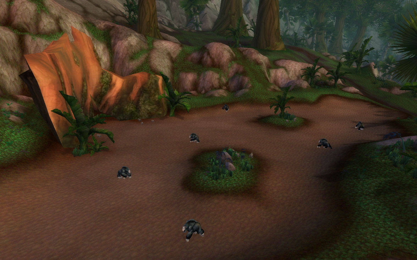 Hardknuckle Clearing[67, 74] is a flat patch of dirt along the southeast edge of Sholazar Basin. It has a few green patches and a large remnant of a tree stump on one end. On this patch Softknuckle gorillas roam under the watchful eye of the