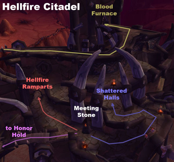 - The novel Beyond the Dark Portal stated that the throne of the Old Horde (and then of the Horde of Draenor) was situated in Hellfire Citadel's back, in a taller tower with a peaked roof.[4] Architecturally, this would mean the tower of the Blood Furnace, but no such throne room can be found in-game.