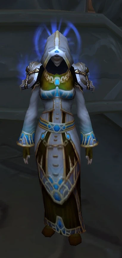 The Hooded Priestess is a human or Forsaken priestess (depending on the player's faction) who appears in Dalaran after a priest player turns in