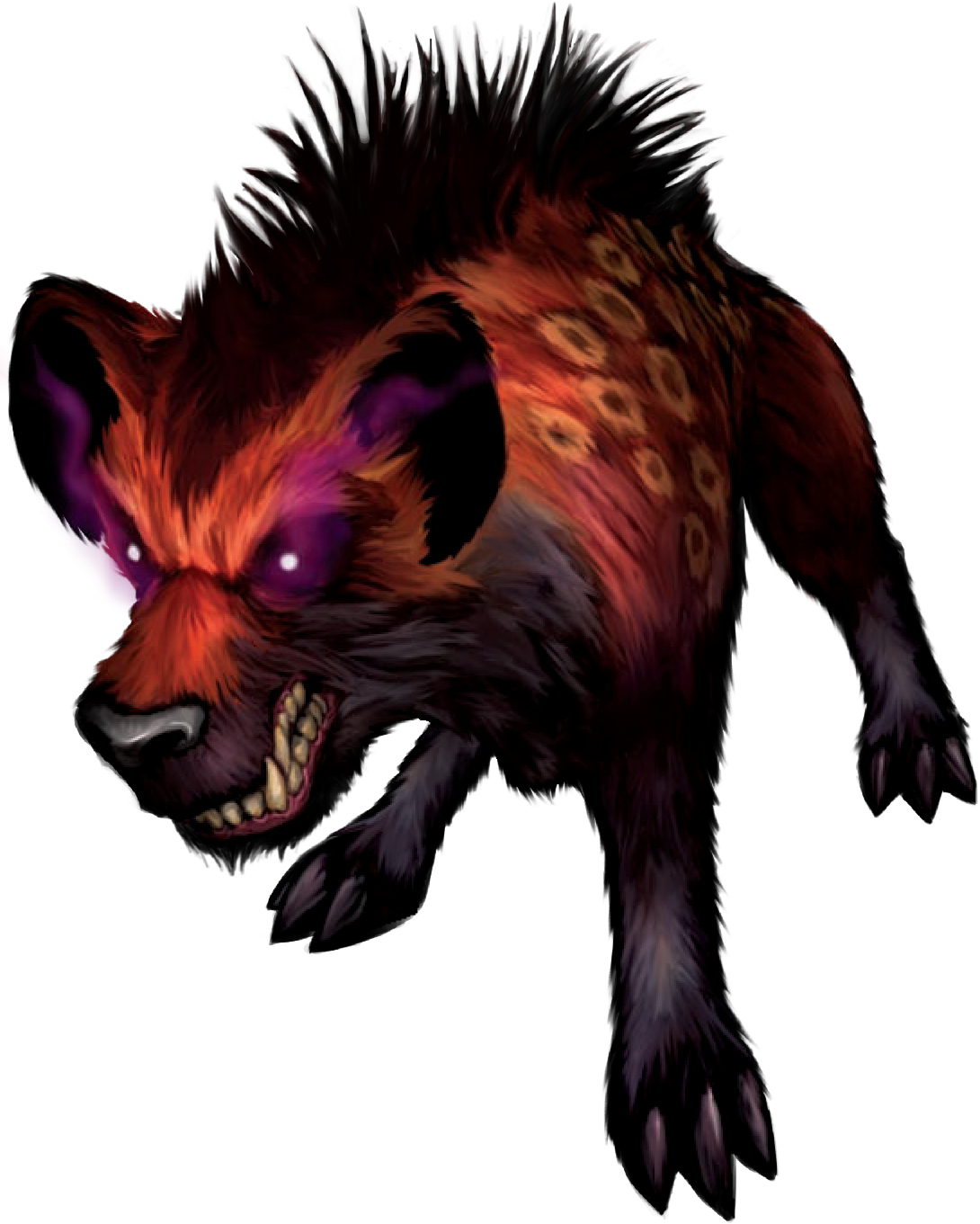 Hyenas are large carnivorous beasts found in the most barren areas of Kalimdor. They are most dangerous when traveling in packs. Rotting corpses attract hyenas and from feeding on the dead they often have an ability to inflict dangerous diseases on those who fight them.[1] Hyenas possess tremendous strength in their jowls.[2]