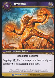 Blood Hero Required Ongoing: Activate, Put 1 damage on a hero or ally you control → It has Assault 4 this turn. |