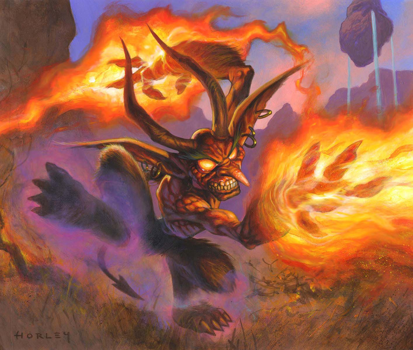 Fel imps appear to be a larger and more powerful type of imp. They are easily distinguishable from their cousins by their wings and massive horns.