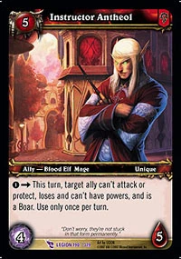 | Rules | 1 → This turn, target ally can't attack or protect, loses and can't have powers, and is a Boar. Use only once per turn. |