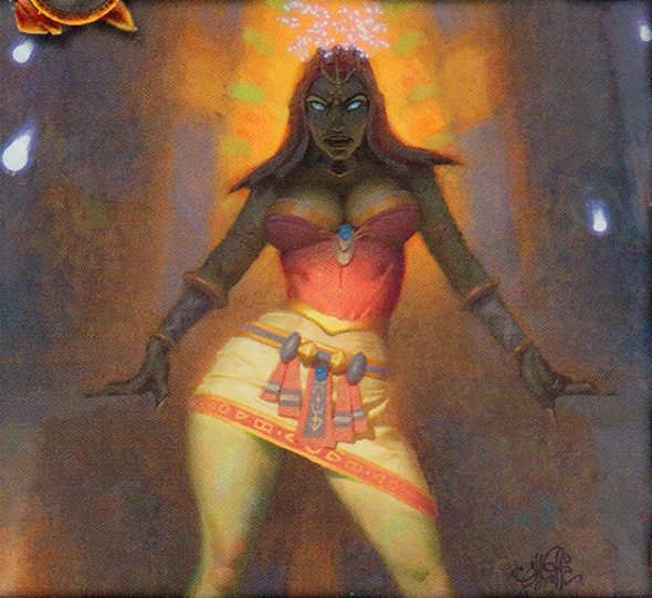 The Conjured Mirage, a rare collectible card from the same expansion, depicts a projection of Isiset. The mirage's flavor text reads: "What you see is Isiset."