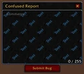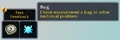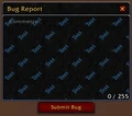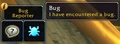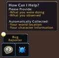 Issue Reporter is the small UI that is available during the alpha, beta, and test phases of an expansion or a patch. It is used to report bugs or a confusion on what to do in a certain situation. It was first introduced during the Battle for Azeroth alpha. With the Rise of AzsharaPTR, tooltips now show a blue "Press X to submit a bug for this" at the bottom in order to report a bug about a specific NPC, achievement, spell, or an item.[1] The default keybinding is F6.