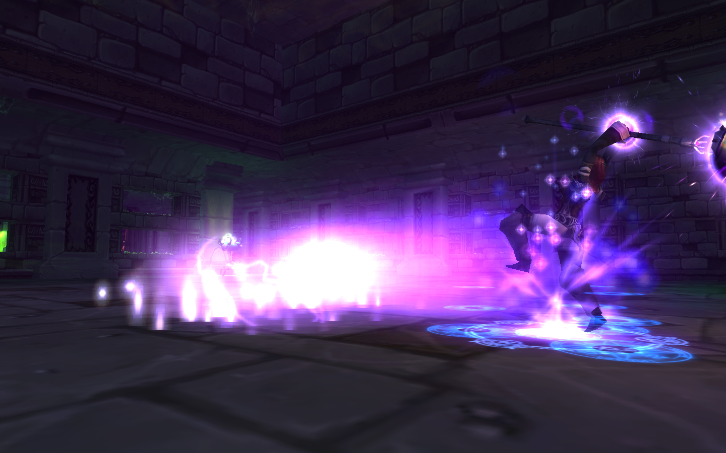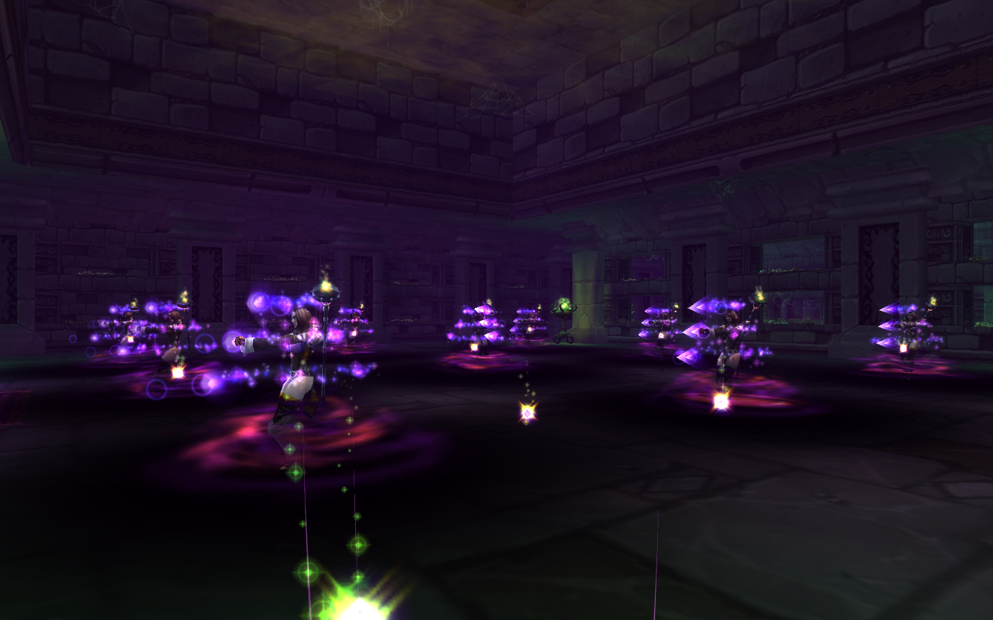 At 66/33%, Jandice will split into fifteen shadow clones of herself with low health. All of them will randomly cast Whirl of Illusion on players. The real Jandice has black hair, headband, shoulders, gloves and belt — all of the clones differ in one or more of these slots. Players need to quickly find the right one and kill it (killing the wrong one triggers a small aoe explosion that hits your party for moderate damage). Once you kill the correct clone, the real Jandice will respawn, spinning for a few seconds, at the same spot where the clone was when it died, so the tank should land a taunt while she's still spinning before the rest of the group unloads. Make sure to turn her around again!