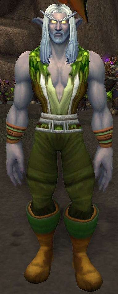 Jarod Shadowsong is the younger brother of Maiev Shadowsong, the former Captain of Suramar's Guard, and was commander of the Kaldorei Resistance during the War of the Ancients, notably surviving a direct encounter with Archimonde himself. He became a hero and leader to the night elves following the war's conclusion, and was instrumental in easing tensions between his people and the Highborne.[7] He made his first appearance at Mount Hyjal in World of Warcraft: Cataclysm, although he previously appeared in several novels.