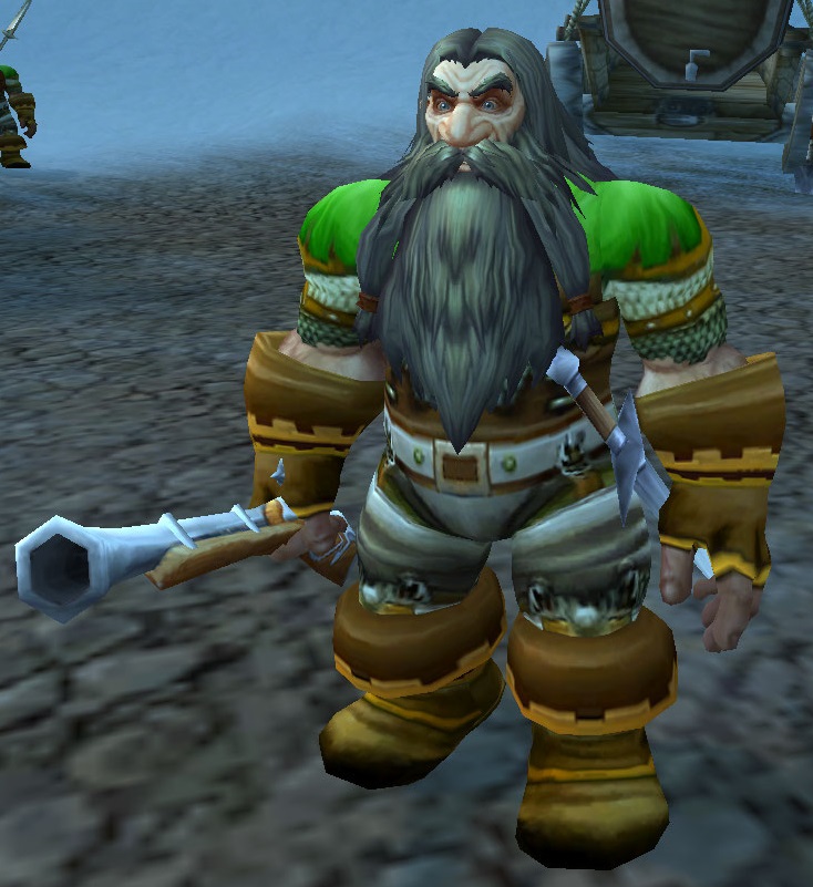 Joren Ironstock is a dwarf quest giver and captain of the local mountaineers in Coldridge Valley of Dun Morogh. With the recent earthquake in Coldridge Valley, his hands are full with the 'barbarous' trogg attacks that have locked down Anvilmar.